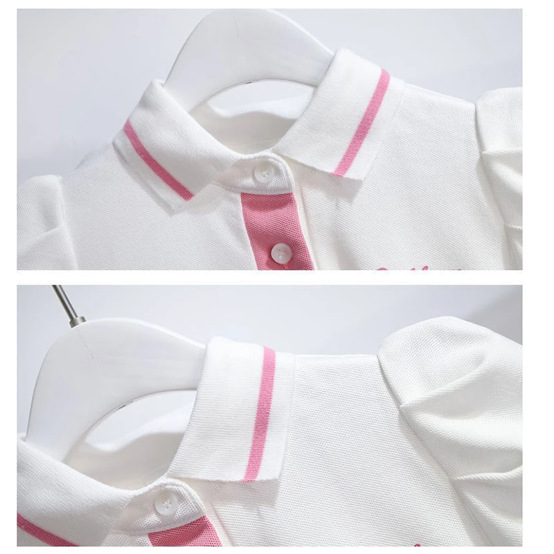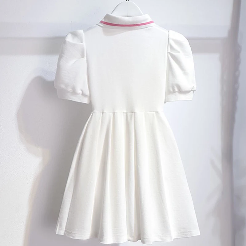 1pcs Summer Children's Dress Girl's Korean Edition Bubble Sleeves Flip Collar Dress Kids Princess Dress Baby Sweet Pleated Skirt