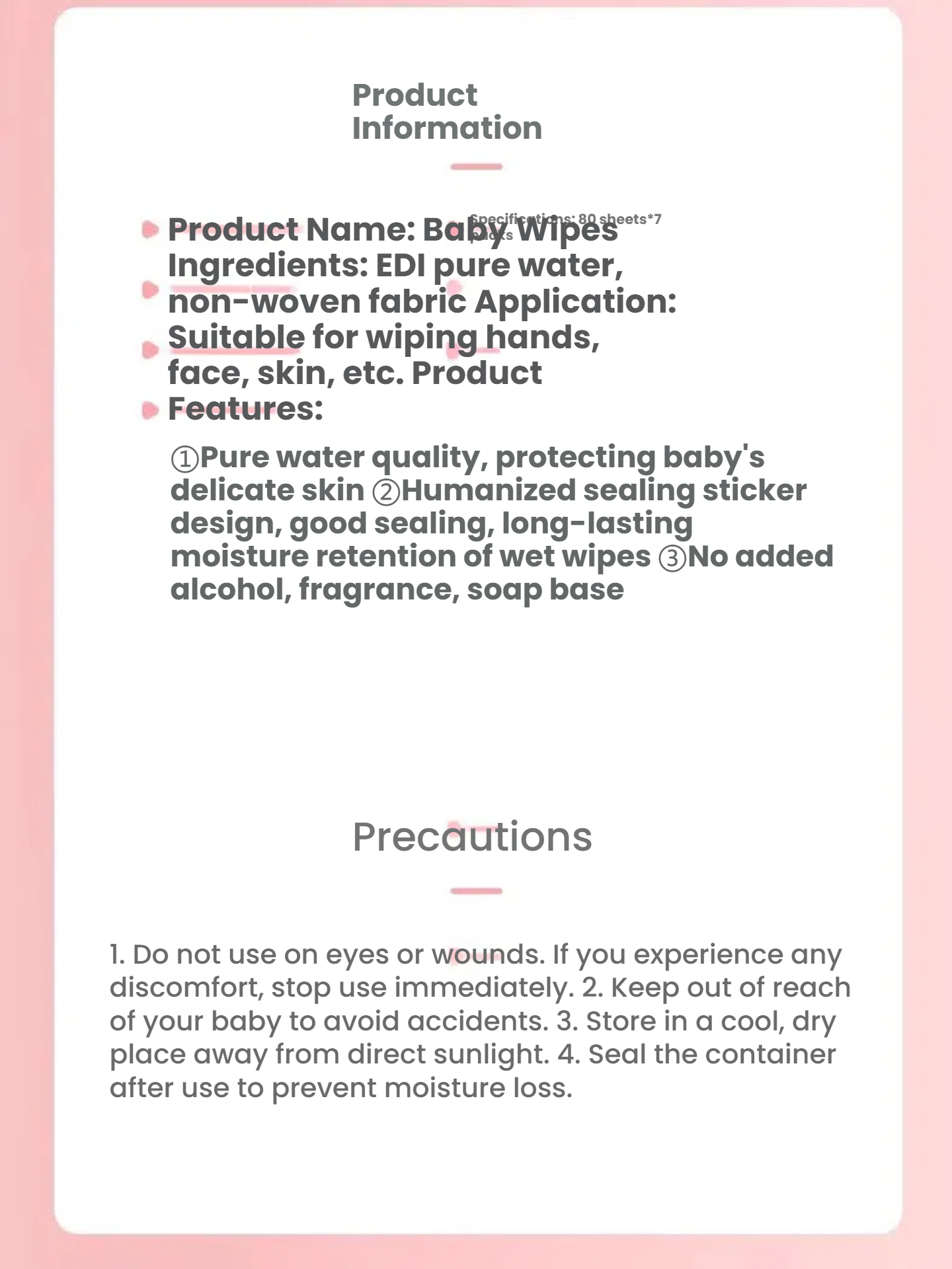 Multi-Purpose Use: While perfect for delicate facial and hand cleaning, these wipes are versatile enough for all-over use, including during diaper changes. Their gentle formula is effective yet mild, providing a one-stop solution for your baby's hygiene.