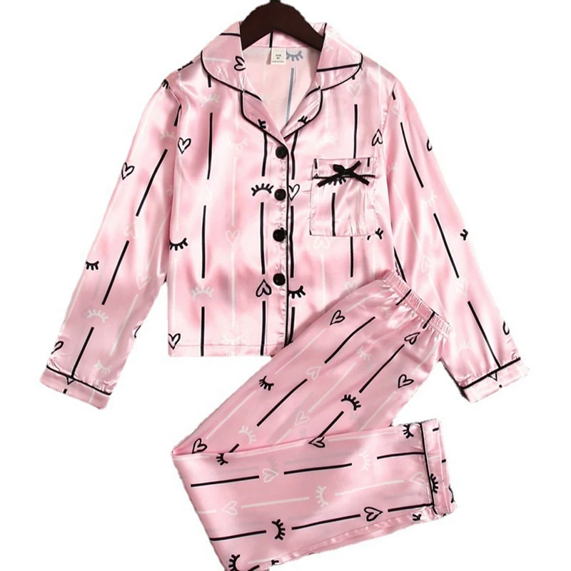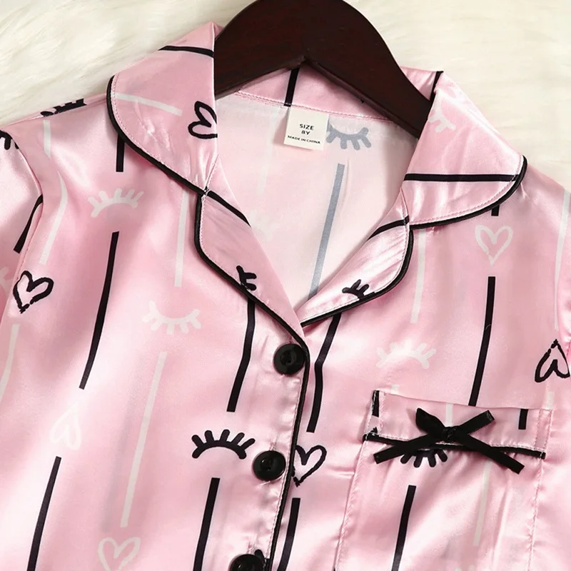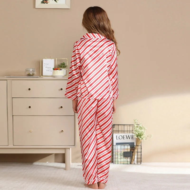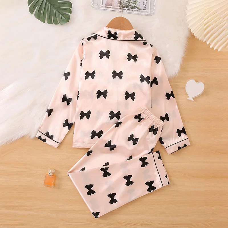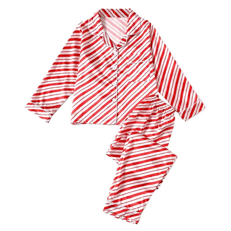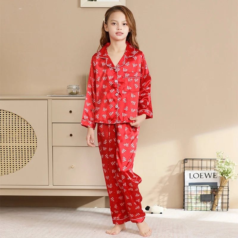 Children’S Pajamas Set Outfit Silk Casual Wear Family Matching Satin Pajamas Long Sleeve Girls’ Home Wear 2pcs Home Clothes Suit