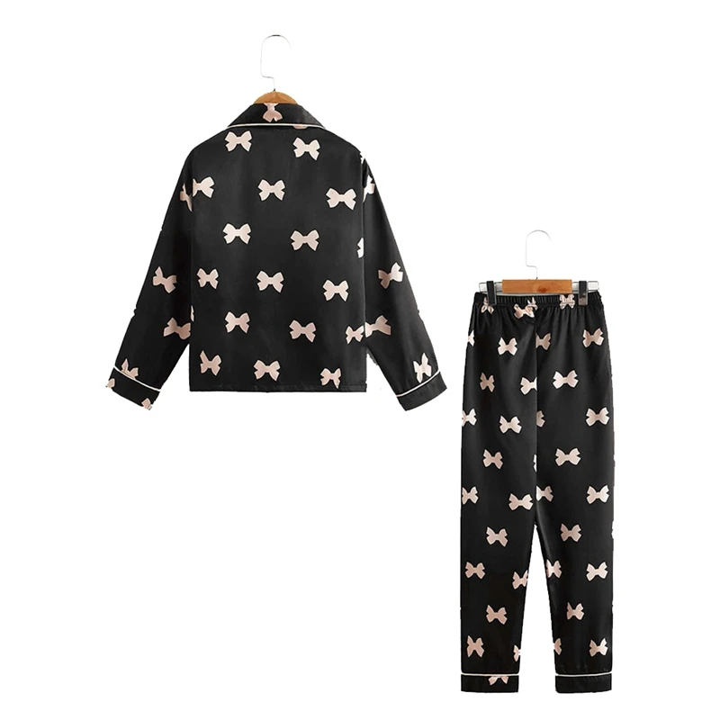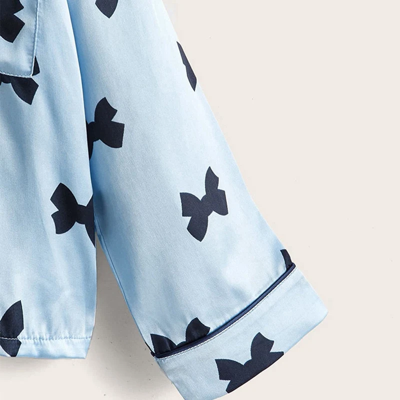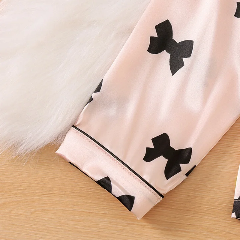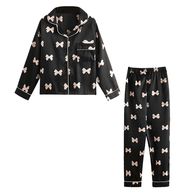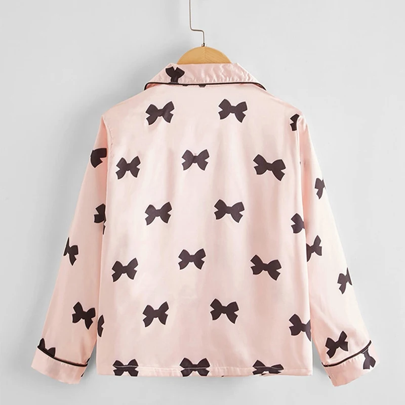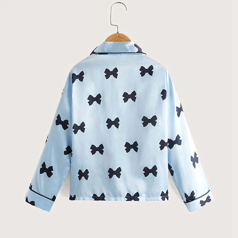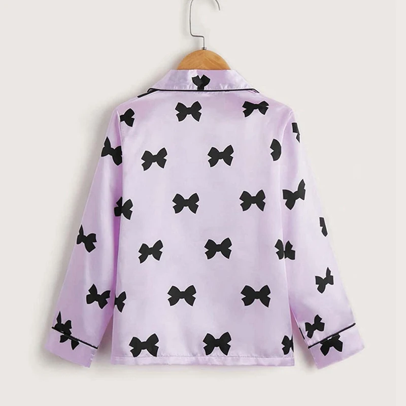 Children’S Pajamas Set Outfit Silk Casual Wear Family Matching Satin Pajamas Long Sleeve Girls’ Home Wear 2pcs Home Clothes Suit