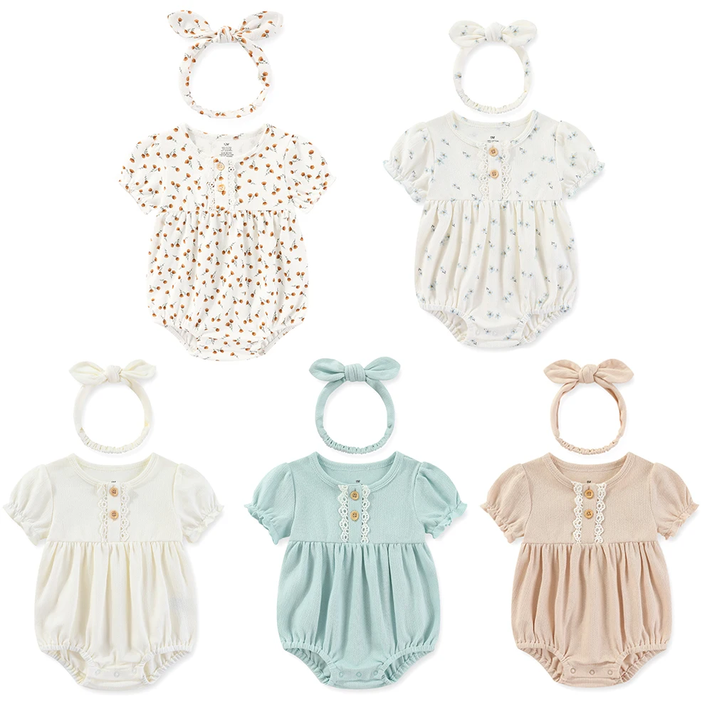 Fashion Cute Short/Long Baby Girls Bodysuit +Hats(Headband) 3-24Months Sweet Cute Newborn Girl clothing sets
