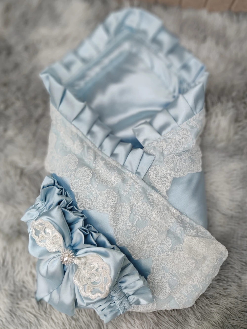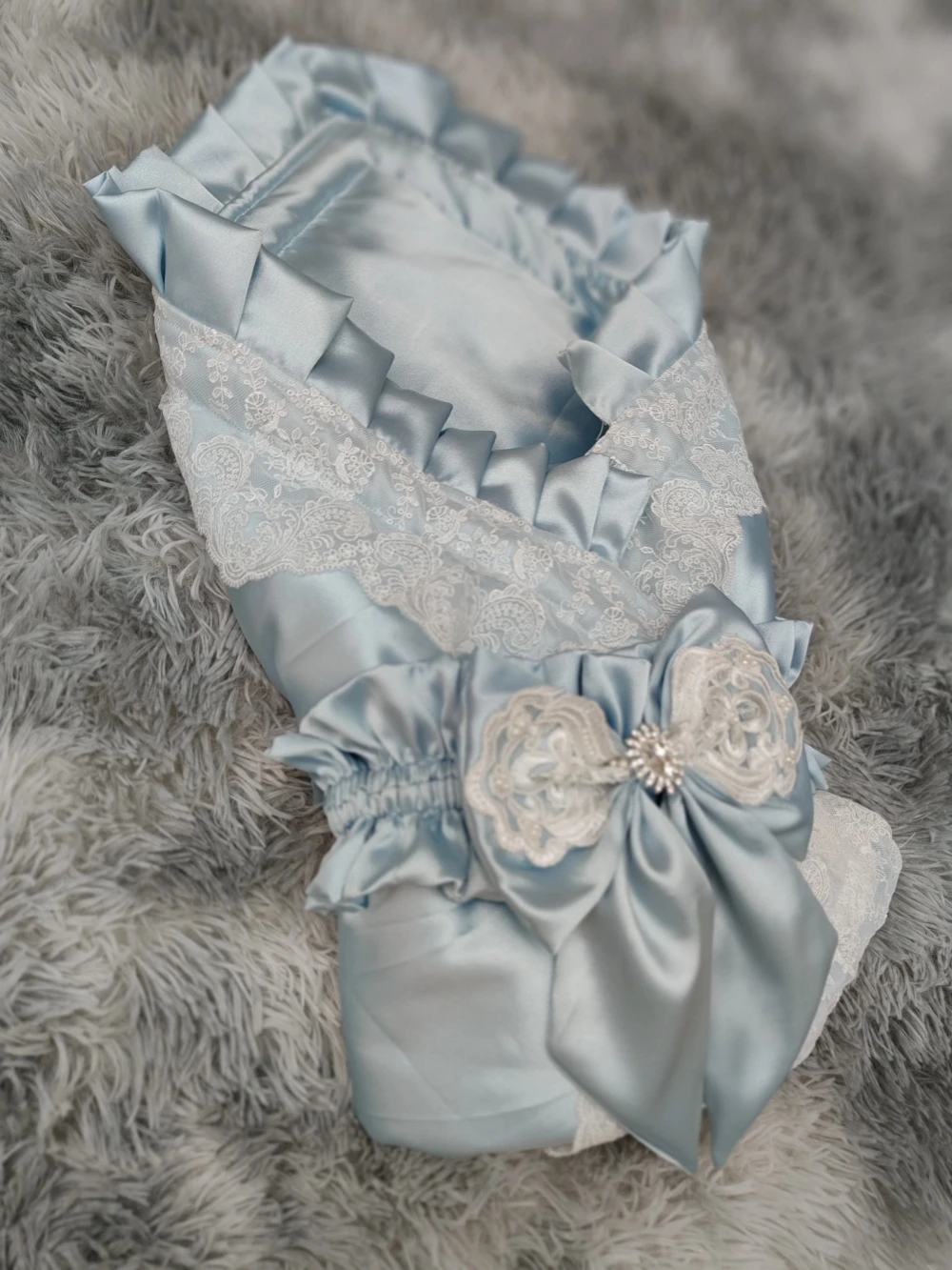 The Princess set is trimmed with delicate lace and embellished with thousands of rhinestones and gems.