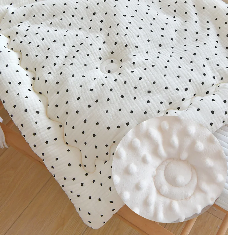 1.Material:Muslin Cotton face+ Filler+Polyester dotty back.