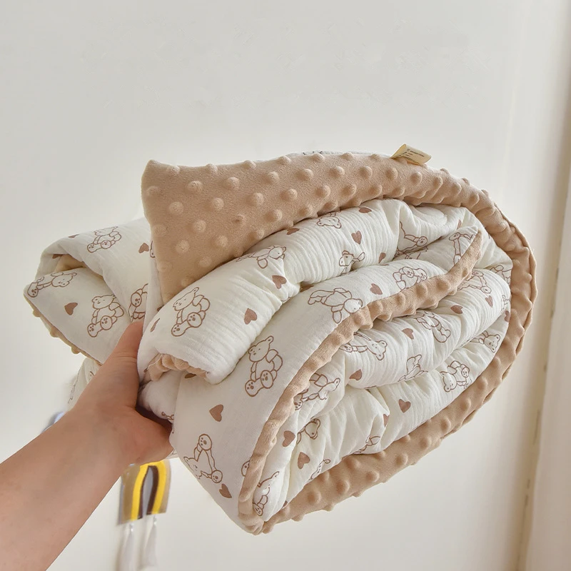 Winter Thermal Muslin Cotton Baby Duvet,Newborn Cozy Quilted Comforter with Dotty lining,Soft Infant Baby Blanket with Filler